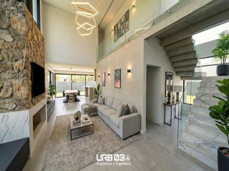 Com 266m de área privativa, a casa foi cuidadosamente pensada para oferecer amplitude e integração dos ambientes, valorizando a iluminação natural e o bem-estar em todos os espaços.